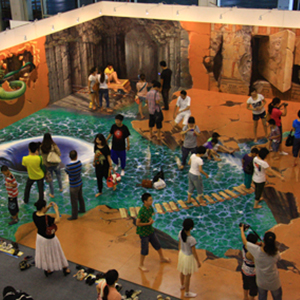 地面互動(dòng)投影系統(tǒng)采用懸掛在頂部的投影設(shè)備把影像效果投射到地面,當(dāng)參訪者走至投影區(qū)域時(shí),通過系統(tǒng)識(shí)別,參訪者可以直接使用雙腳或動(dòng)作與投影幕上的虛擬場(chǎng)景進(jìn)行交互,各種 ……